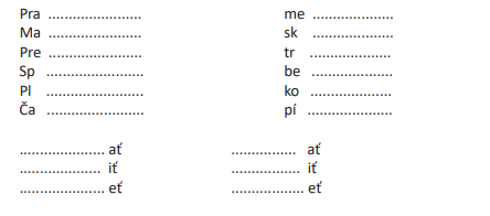 Šiesta úloha: Nájdite činnosti, ktoré môžete vykonávať a ktoré začínajú alebo končia na nasledovné písmená.